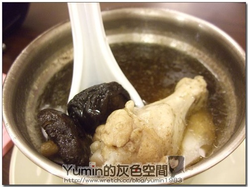 這是香菇雞湯...這個湯一端來時,就只有一個感覺...就是"髒",再來就又是一層油油亮亮閃閃動人的油在最上方
